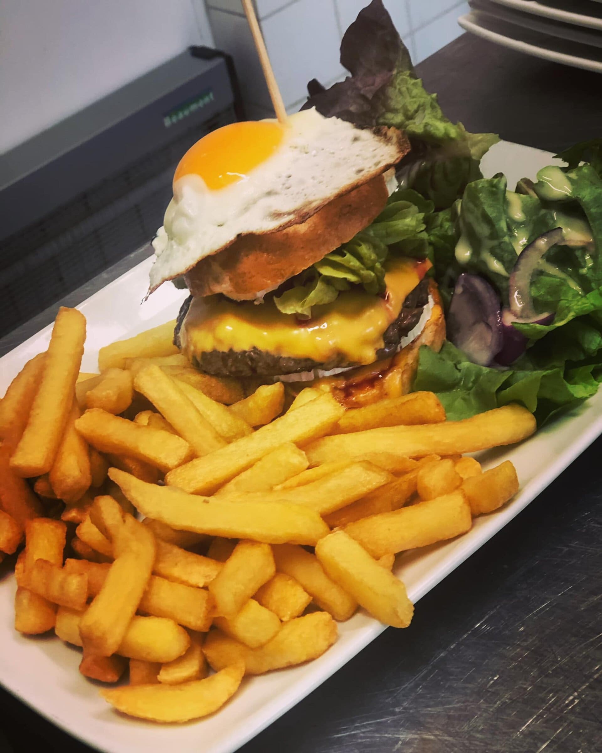 – Le Acheval (bun’s, steak haché, bougy burger, oignons, salade, tomates, oeuf maison):13.90€.